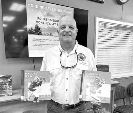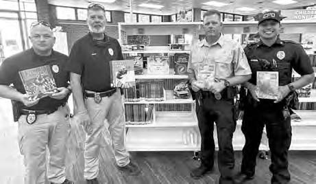 The Nesbitt Memorial Library is incredibly thankful for the Catherine Dumraese Trust Grant. With this grant the library was able to purchase a ton of books for the children’s section. Above, from left: Christopher Mayfield, Skip Edman, Travis Kent, Israel Salinas are pictured with their personal favorites from the library. The City Hall family, city councilmen and Nesbitt Foundation Member were recently photographed with their personal favorites including City Manager Donald Warschak, Assistant City Secretary, HR Dinah Jacobs, councilman Ronny Daley, Chief Skip Edman, Lt. Chris Mayfield, Det. Travis Kent, officer Israel Salinas, Rhonda Fitzgerald, Anne Faichtinger, City Secretary Bana Schneider and Nesbitt Memorial Library Foundation member Ester Chandler. Courtesy photos