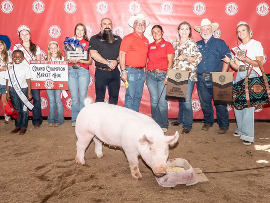 Market Hog: Evani Nino, purchased for $8,500 by Cavender Auto and Houston Area Chevy Dealers, Alan and Trish Cegeilski, Weimar Meat Company and Oak Grove Veterinary Clinic