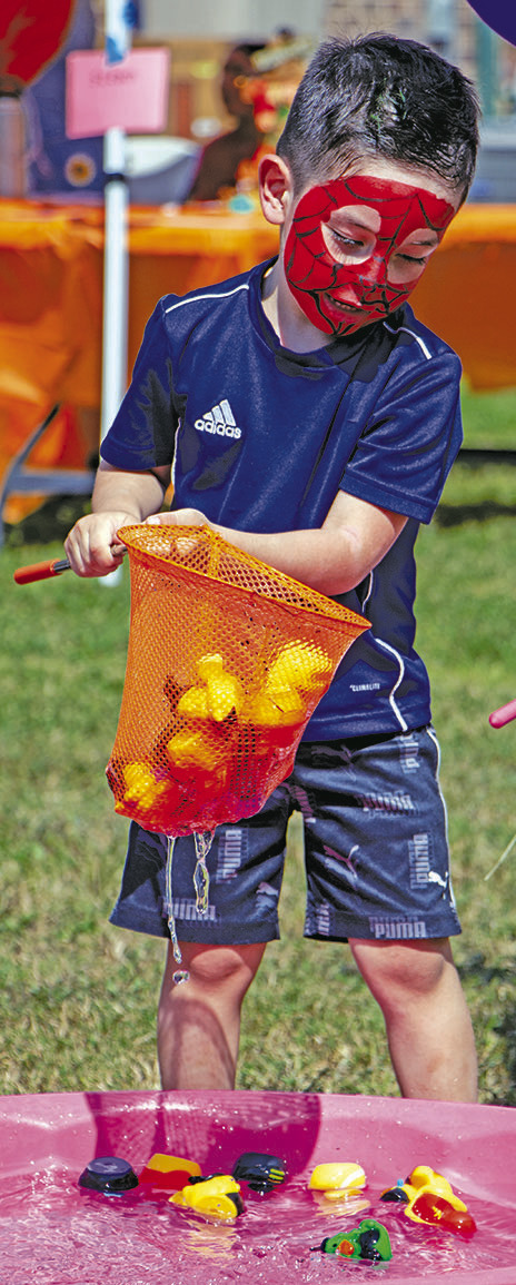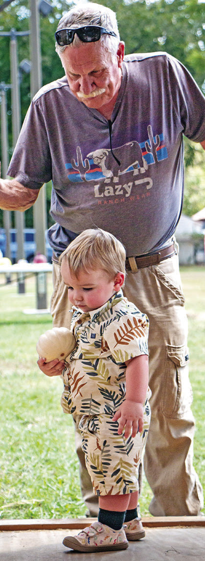 (ABOVE) Autumn Carroz paints a small pumpkin pink, blue and green during the Colorado County Habitat for Humanity Fall Fest, Saturday, Sept. 27, in Columbus. (LEFT) Angel Arroyave fishes Halloween- themed rubber ducks out of a kiddie pool during the Colorado County Habitat for Humanity Fall Fest, Saturday, Sept. 27, in Columbus. (RIGHT) John Moore and his grandson Clay Moore explore a pumpkin hut during the Colorado County Habitat for Humanity Fall Fest, Saturday, Sept. 27, in Columbus. All by Citizen | Allison Drinnon