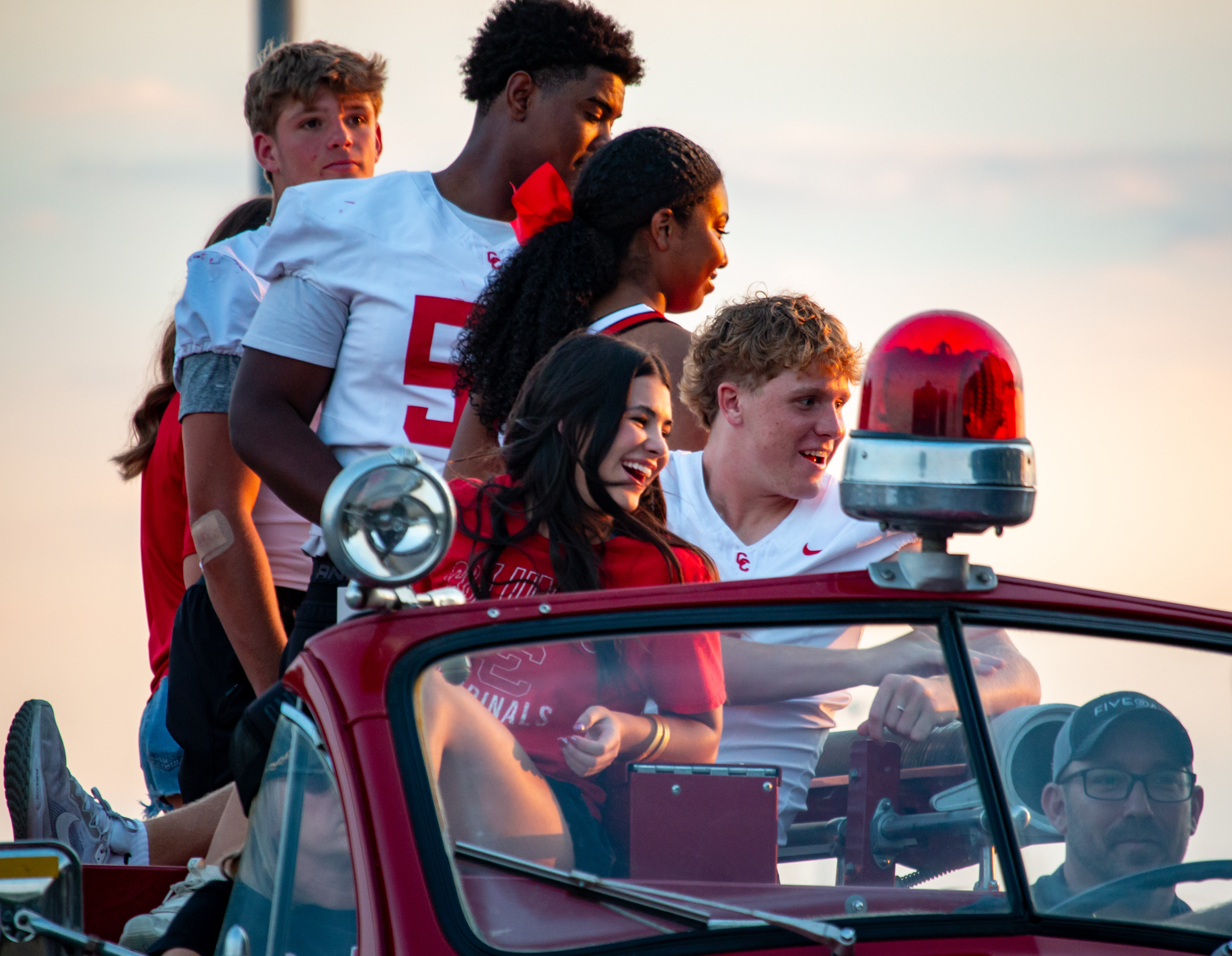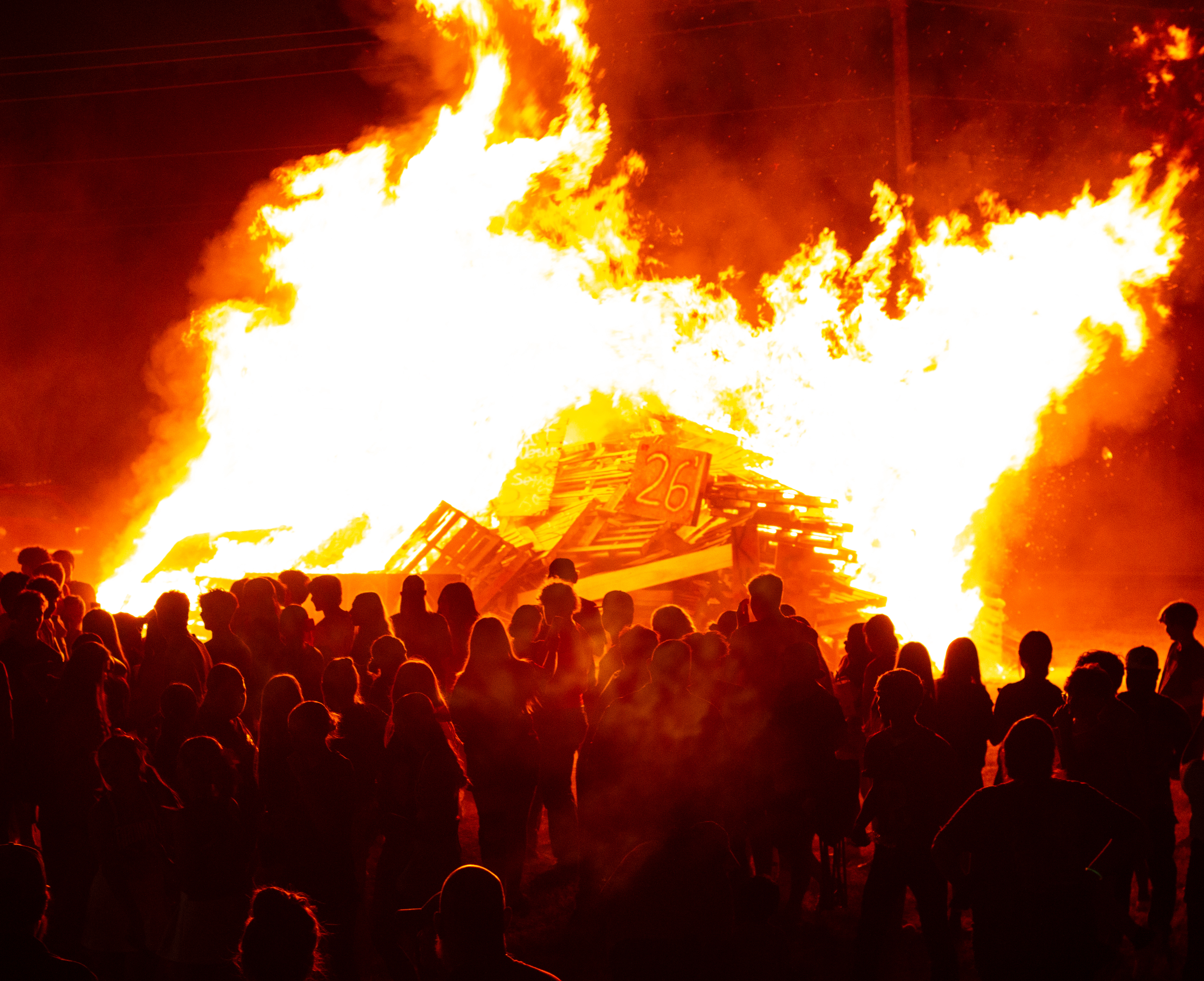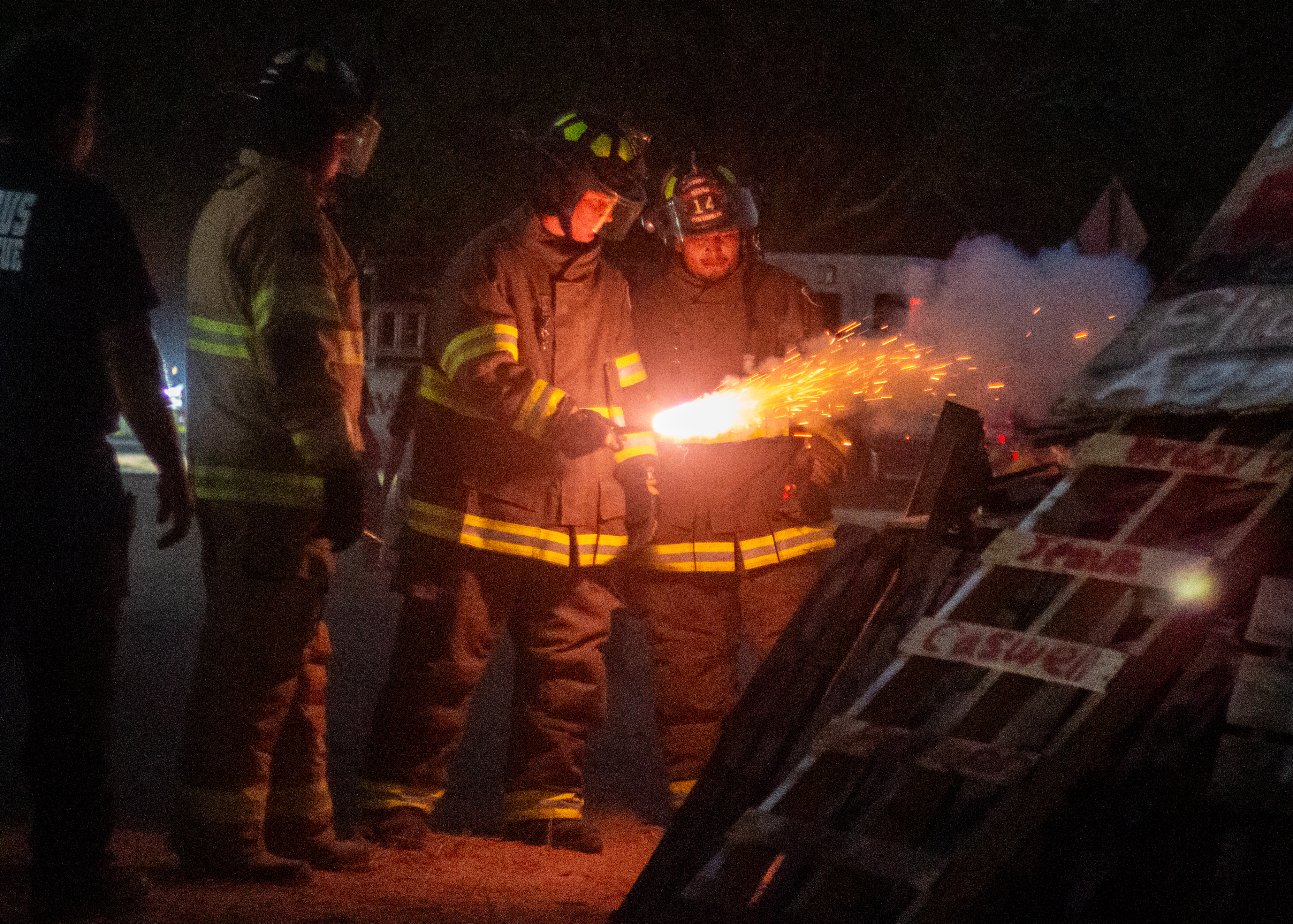 Columbus High School homecoming court members Ty Wiggs (left), Keyon Hemphill, Jada Brown, Brody Tribe and Ava Heffley (bottom) ride on a vintage fire engine during the Homecoming Parade, Wednesday, Oct. 1, near Memorial Stadium.Columbus Youth Sports cheerleaders smile at the crowd while riding on a trailer float during the Homecoming Parade, Wednesday, Oct. 1, near Memorial Stadium.Columbus High School senior Rylan Carruthers and Columbus Volunteer Fire Department firefighter Franklin Sosa light the Class of 2026 senior bonfire during the Homecoming Community Pep Rally, Wednesday, Oct. 1, at Columbus High School.The Columbus High School's Class of 2026 senior bonfire blazes high during the Homecoming Community Pep Rally, Wednesday, Oct. 1, at Columbus High School.A young boy scratches his head while watching the Columbus High School Class of 2026 senior bonfire during the Homecoming Community Pep Rally, Wednesday, Oct. 1, at Columbus High School.A firefighter with Columbus Volunteer Fire Department sprays water to control the perimeter of the Columbus High School Class of 2026 senior bonfire during the Homecoming Community Pep Rally, Wednesday, Oct. 1, at Columbus High School.