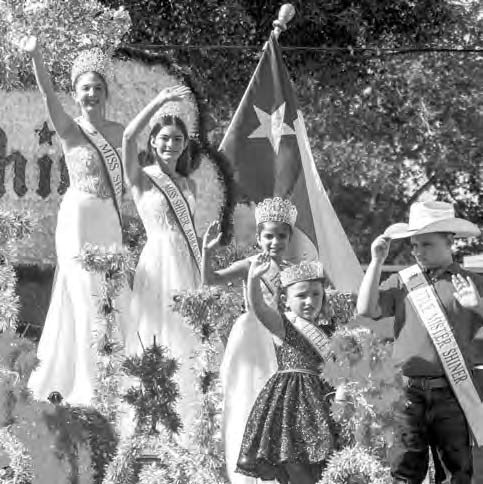 Fair Queen Micah Ehlert (top row), Junior Membership Queen Khloe Woolard (second row, left), Membership Queen Natalia Ramirez, Junior Queen Rinley Nelson (third row, left), Junior Miss Vivienne May, Little Mister D’troit Freison (bottom row, left) Little Miss Bristol Kotrla of Colorado County Royal Court wave to the crowd during the Colorado County Fair Parade, Saturday, Sept. 13, in Columbus. The float placed best overall in the parade.