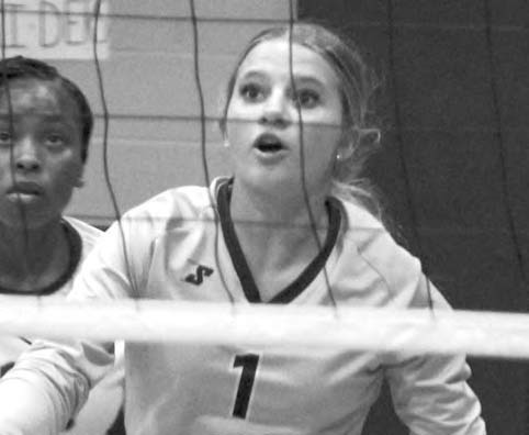 Olivia Noska tracks the ball with her eyes before recording a dig.