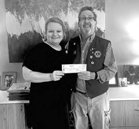 The Weimar Lions support our local schools through donations to their general funds account. Here Lion Mark Dannemiller presents a check to Weimar Junior High School Principal Skye Anderle.