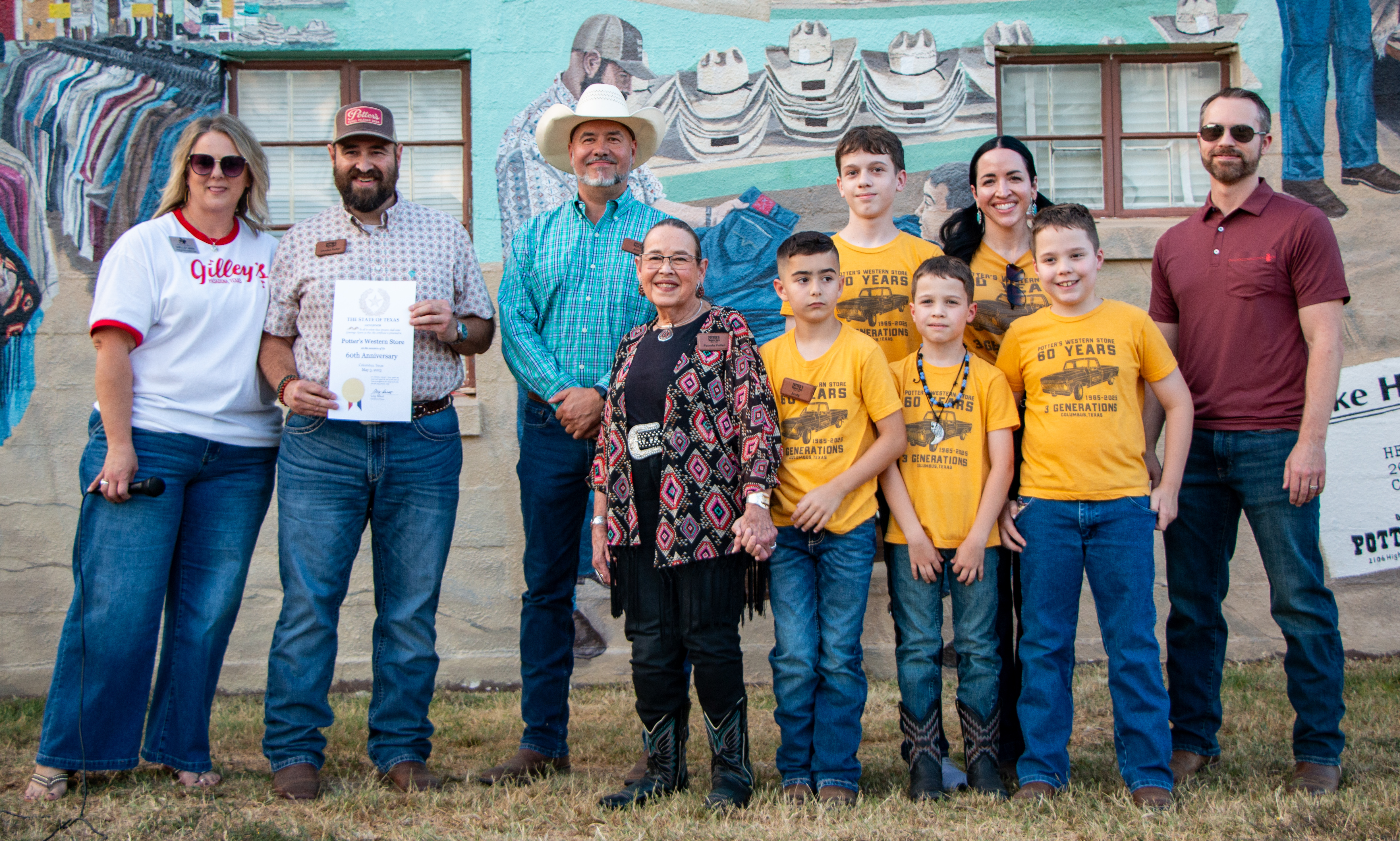 The Potter family welcomed community members and business leaders to celebrate the unveiling of Potter’s Western Store’s new mural and the store’s 60th anniversary, Friday, Oct. 3.