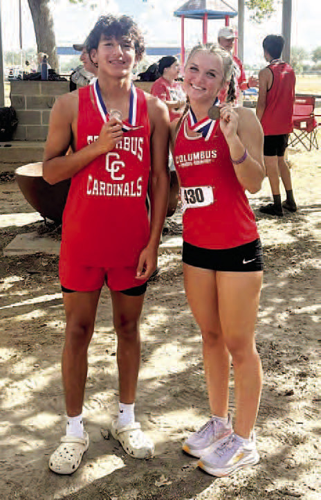 The Columbus Cross Country team traveled to Yoakum to compete in the District Meet. While there were several strong performances from Columbus at the District Meet, only two of their runners qualified for the Regional Meet. The two runners were, Kaylea Foster and Christian Matinez so both the Lady Cardinals and the Cardinals cross country team earning a spot at the Regional Meet. Foster came in 4th place while Martinez came in 6th place to earn his spot at the Regional Meet. These runners will have a tough task of earning a spot at the State Meet, but if there is one thing Columbus athletes love, it’s a little bit of adversity to challenge them. Courtesy photo