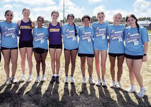 The Weimar Ladycats cross country team Rayo Rendon (left), Faith Cantwell, Alazay Moreno, Emily Sternadel, Zulema Perez, Alexa Moreno, Aubrey Breska, Brooke Ohnheiser, & Ella Herzik. Courtesy photo