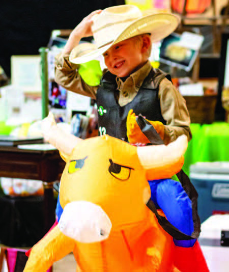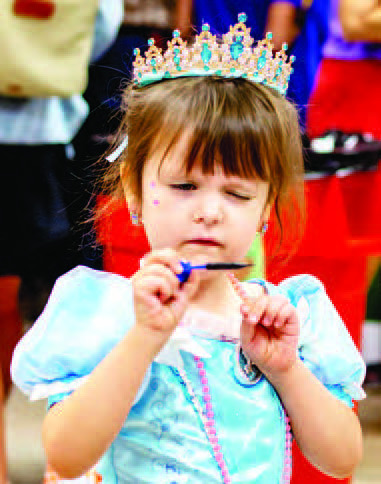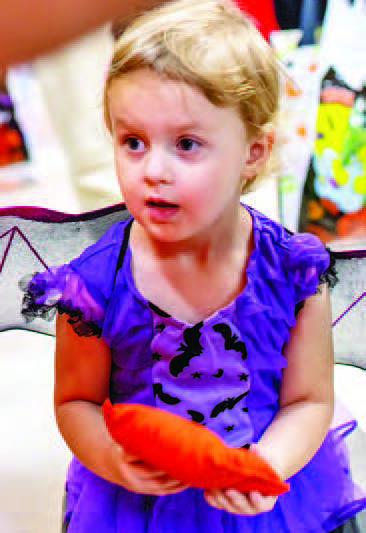 Far left: Jackson Rhodes steadies himself and grabs his hat after spinning to show off his costume for a contest. Left: Ottilia Weishuhn runs up to toss a beanbag during the carnival.
