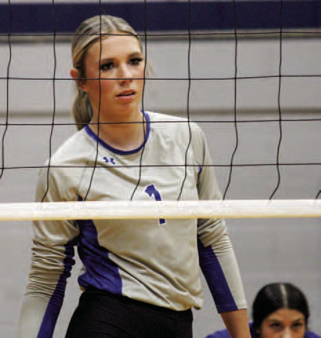Raelee Nelson gets her hands up to defend the net. Citizen | Evan Hale