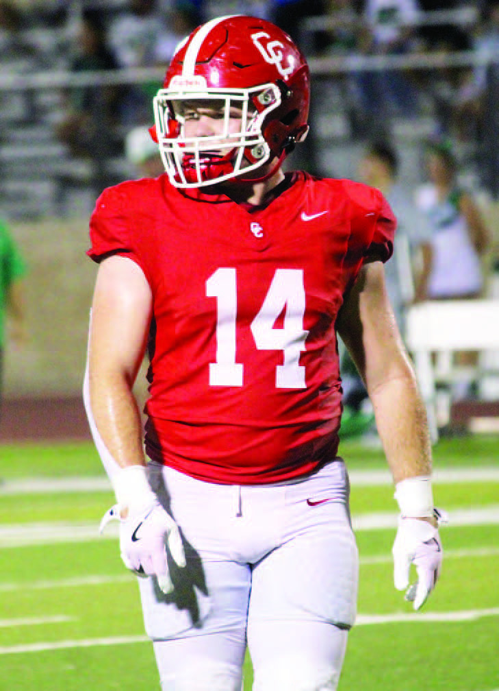 The Cards final touchdown came in the form of a pick-6 as Brody Vinklarek intercepted a Hallettsville pass and returned it for a touchdown. He was not the only Cardinal defender to intercept a Hallettsville pass as Brody Tribe got his hands on a Hallettsville pass that set the offense up for a score.