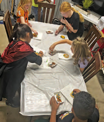 Columbus Club members put their decorating skills to the test, creating tasty pumpkins in arts and crafts. Pictured from top left in U shape are Everly Arrison, Mia New, Isaiah Gordon, Loralye Hollingsworth, and Kyla Arrison.
