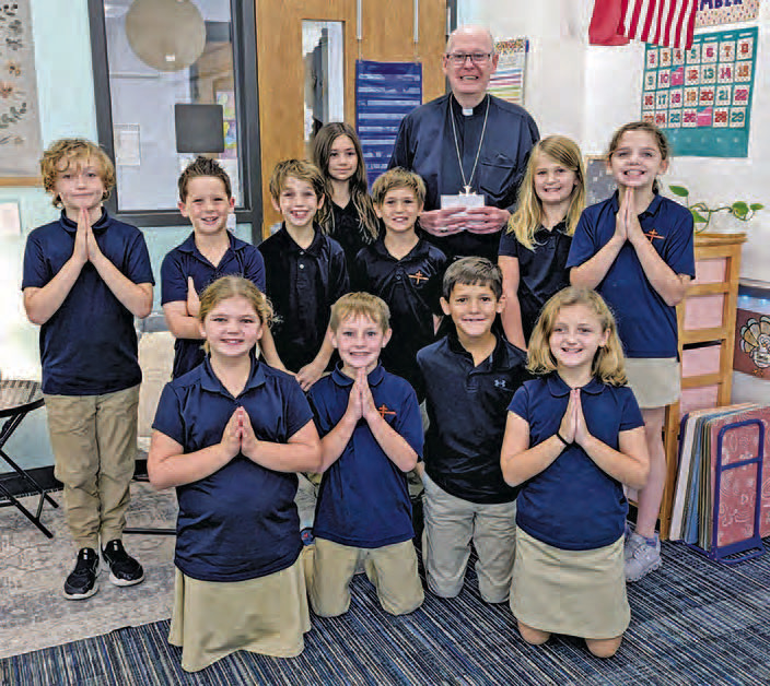 Bishop Brendan Cahill visited campus last Friday, celebrating Mass for the student body. After Mass, and before visiting other classrooms, he spent some time with the 3rd grade class telling them about his childhood experiences, and how his Christ-like friendships carried him through a particularly trying time while in 3rd grade.