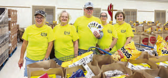 From left, Columbus Food Pantry volunteers Nancy Hopper, Fausta Kaiser, Steve Walling, Leannine Lowrey and Susan Glover stand ready to distribute goods. Courtesy photo