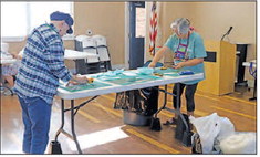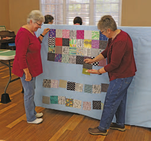 Quilt sisters Donna Trusy and Sandy Courrier designing a charity quilt.