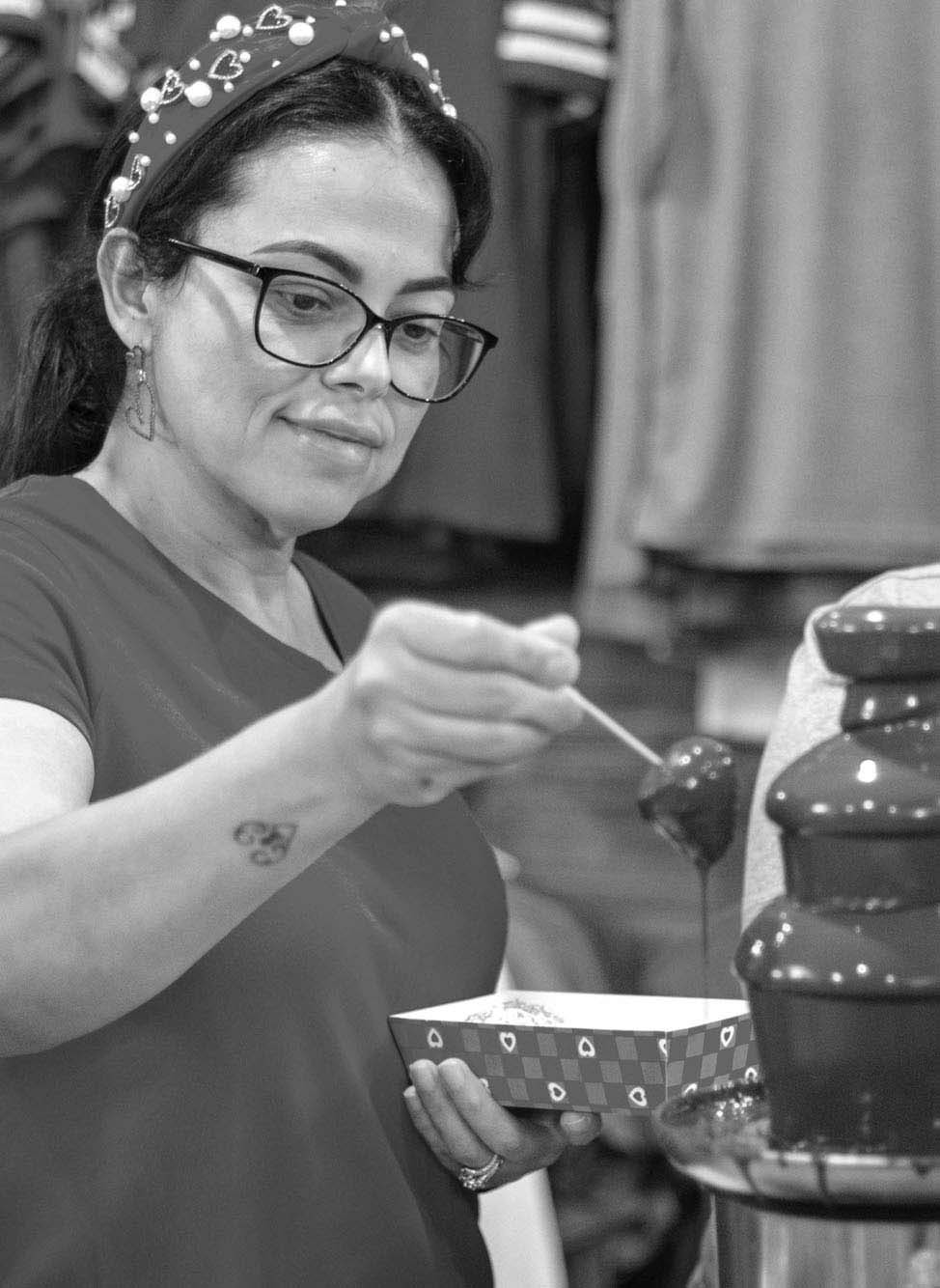 Lamber to’s Main Street Italian Restaurant set a soothing atmosphere with a live violinist and tables decorated with roses. The Painted Tree Emporium collected names for a drawing and featured Valentine’s products for sale. Powerhouse Graphics entranced many kids with a chocolate fondue fountain to dip fresh strawberries, marshmal lows and other treats in.