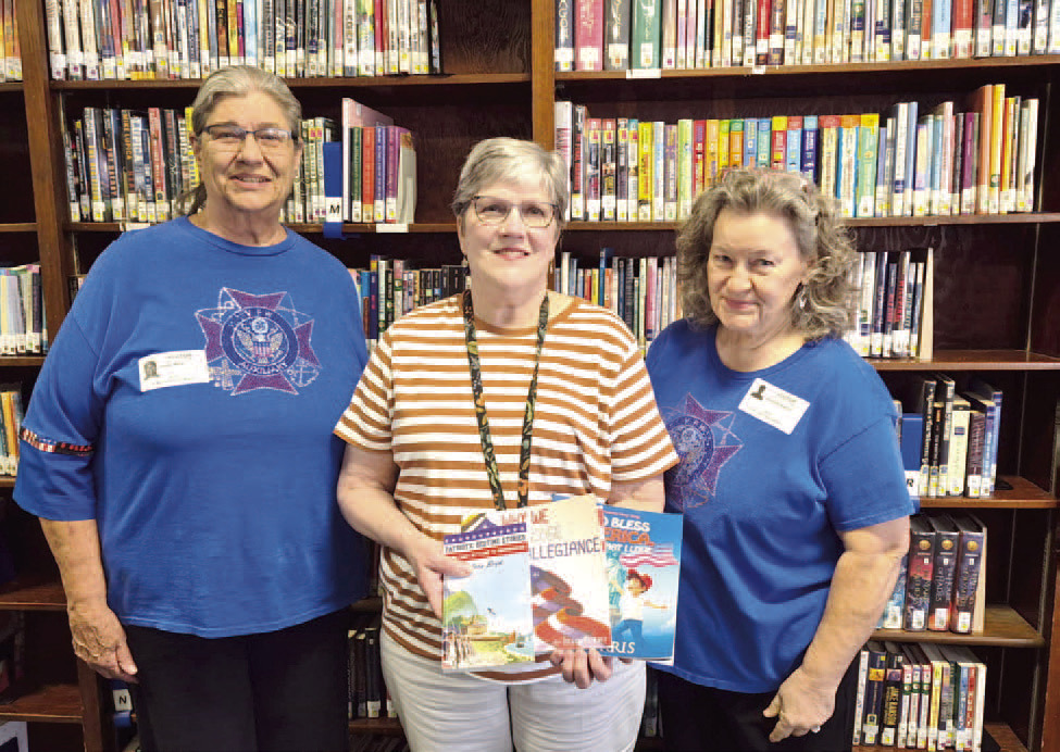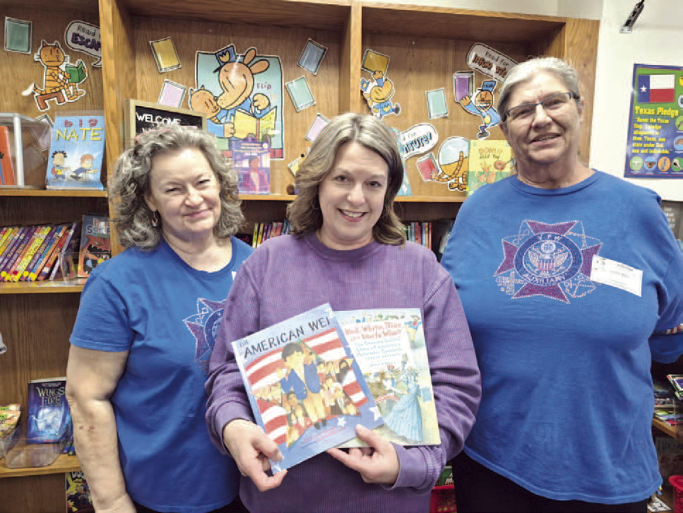 The local VFW Post 5875 Auxiliary tries to promote patriotism by presenting each of the local schools with Patriotic Books for their libraries each year. This year, Jeanette Koenig and Linda Wick, Americanism Co-chairmen presented books to St. Michael’s School, Weimar Elementary School, Weimar Jr. High School, and Weimar High School.