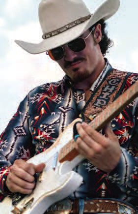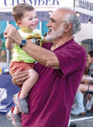 LEFT: Mahamoud Al Batal dances with his grandson Farais Al Batal to live music at Rock the Block, Friday, March 27, in downtown Weimar. RIGHT: Chip Darby jams a guitar solo while performing with his band Chip Dary and the Vintage Soul during Rock the Block, Friday, March