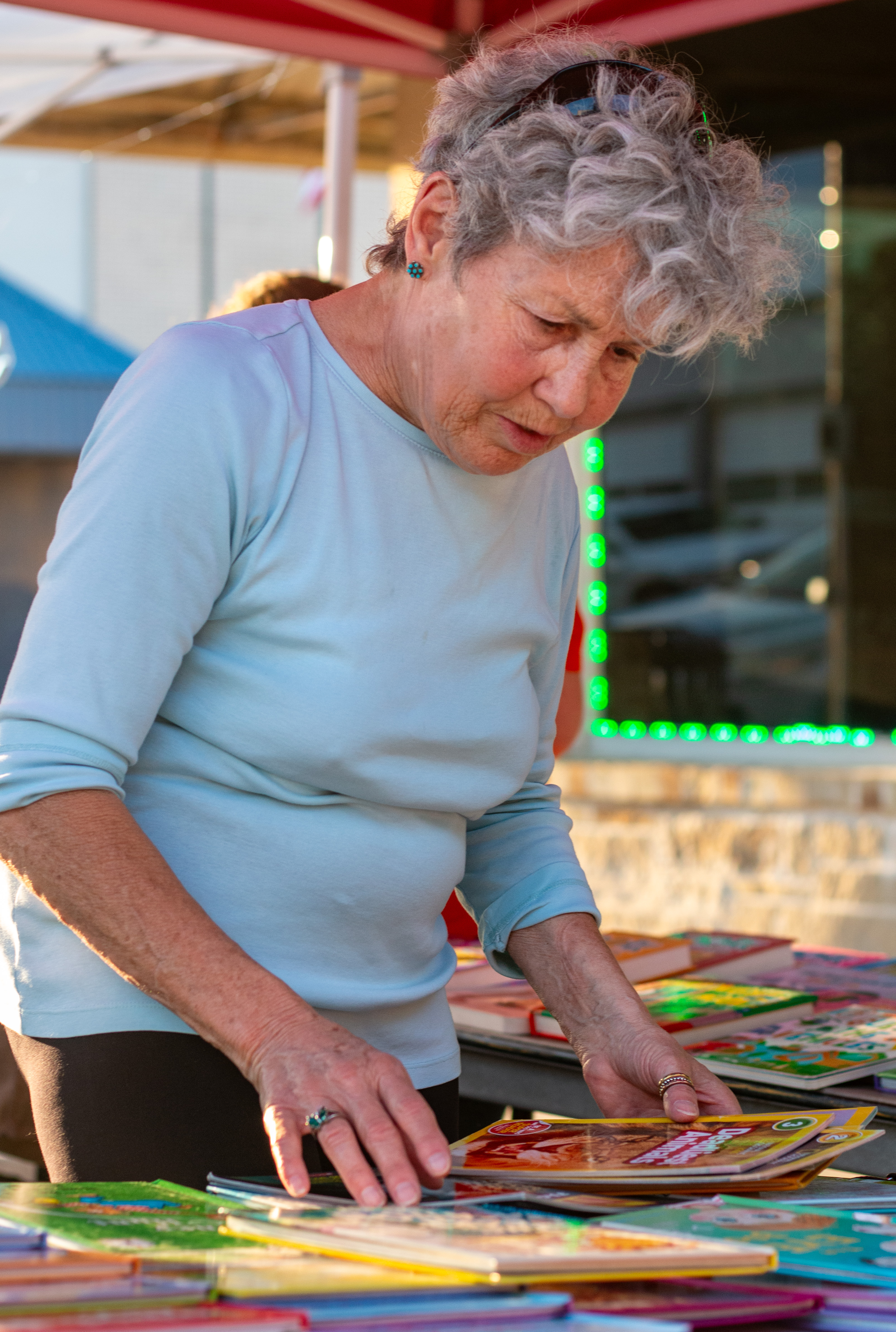 Chip Darby jams a guitar solo while performing with his band Chip Dary and the Vintage Soul during Rock the Block, Friday, March 27, in downtown Weimar.Cristine Etue smiles and laughs while chatting with permanent jeweler Emily Ponder during Rock the Block, Friday, March 27, in downtown Weimar.Hilario Berrones mixes two freshly squeezed lemonades during Rock the Block, Friday, March 27, in downtown Weimar.Kris Hubenak and her children Elsie, in her arms, Lily, left, and Owen wait for freshly squeezed lemonade during Rock the Block, Friday, March 27, in downtown Weimar.Teresa Andriano searches for dinosaur books for her friend's children during Rock the Block, Friday, March 27, in downtown Weimar.Chip Darby jams a guitar solo while performing with his band Chip Dary and the Vintage Soul during Rock the Block, Friday, March 27, in downtown Weimar.