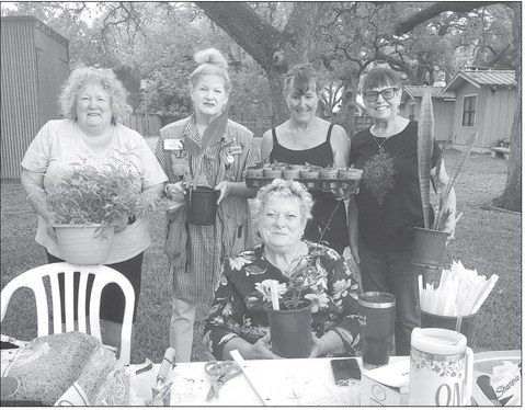 The Columbus Garden Club plant sale will be held Saturday, April 25 at Brookshire Bros in Columbus. From left are Cheryl Rose, Nancy Galloway, Kay Swor, Ann Pavliska, and front Sandy Barrett. Courtesy photo